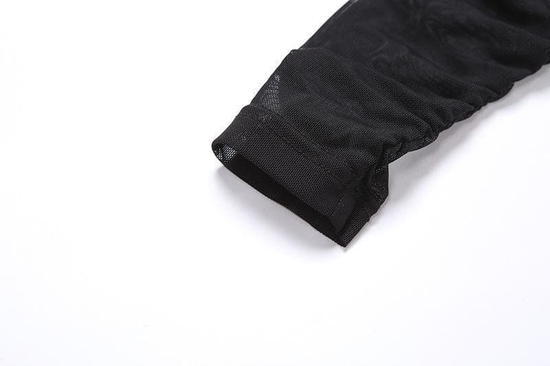 High neck mesh see-through ruched bodysuit