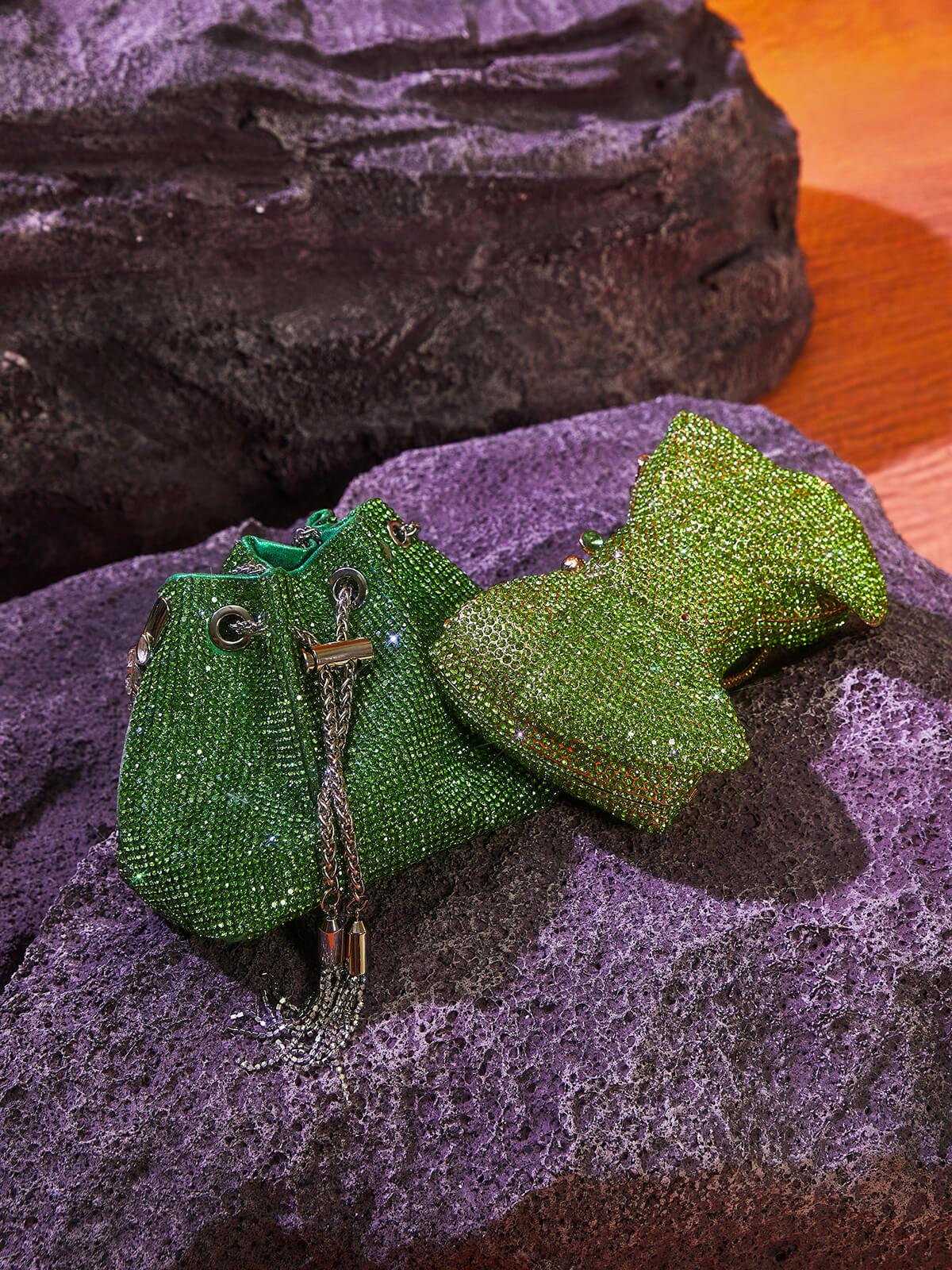 Mattea Crystal Embellished Bucket Bag In Green
