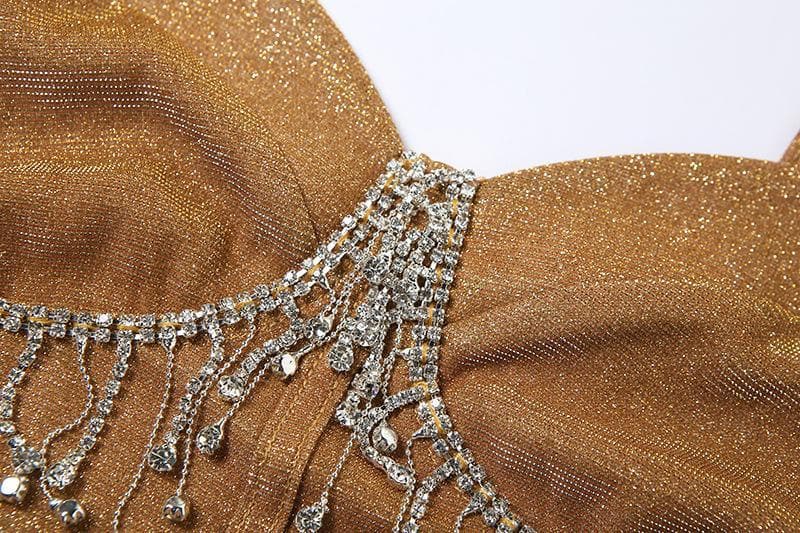 Tassel heart neck glitter cami crop top